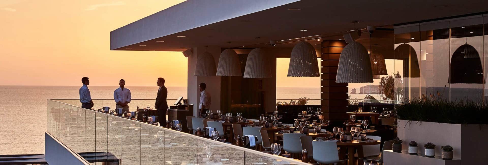 Die Pershing Bar ist ein ikonischer Treffpunkt über den Klippen Ibizas, inspiriert von der Welt luxuriöser Motoryachten. Teakholz, elegantes Design und der Blick auf Es Vedrà schaffen eine Atmosphäre wie an Deck einer Pershing 9X.