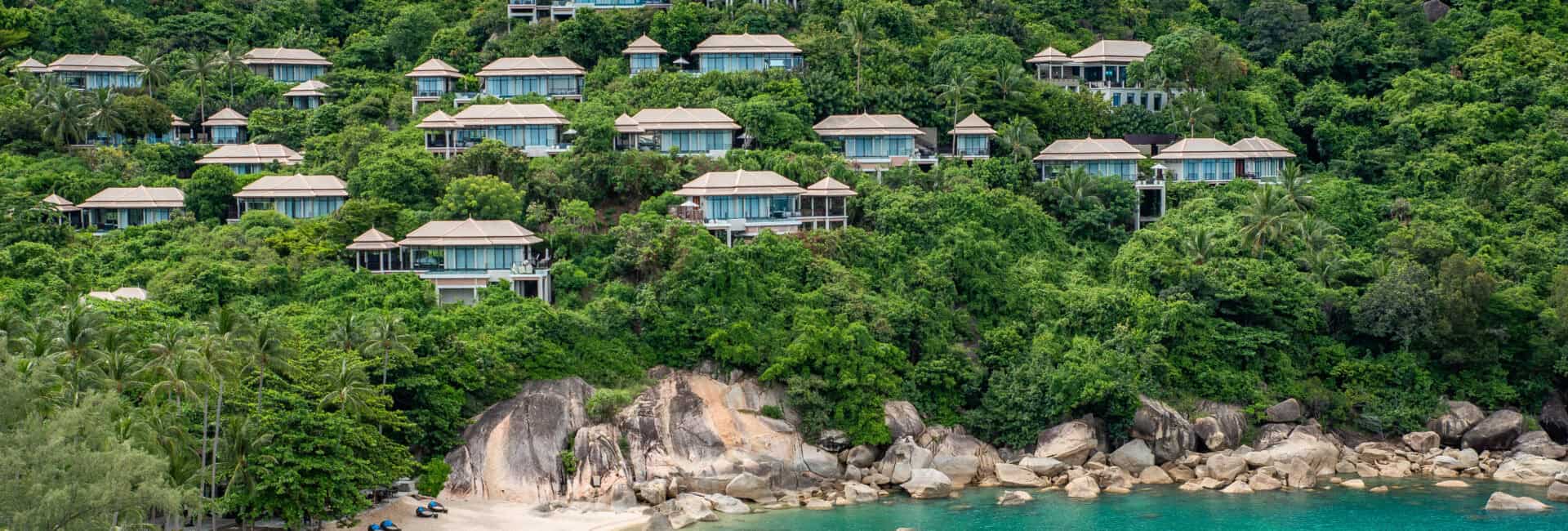 Das Resort erstreckt sich auf einer privaten Hügelbucht mit Blick auf die malerische Lamai-Bucht und die 87 luxuriösen, freistehenden Villen sind im modernen asiatischen Stil gestaltet. Jede Villa bietet großzügige Wohn- und Schlafbereiche sowie private Pools auf weitläufigen Sonnendecks, die für maximale Privatsphäre sorgen. Ein Butler-Service erfüllt individuelle Wünsche, sodass Sie Ihren Urlaub genießen können.