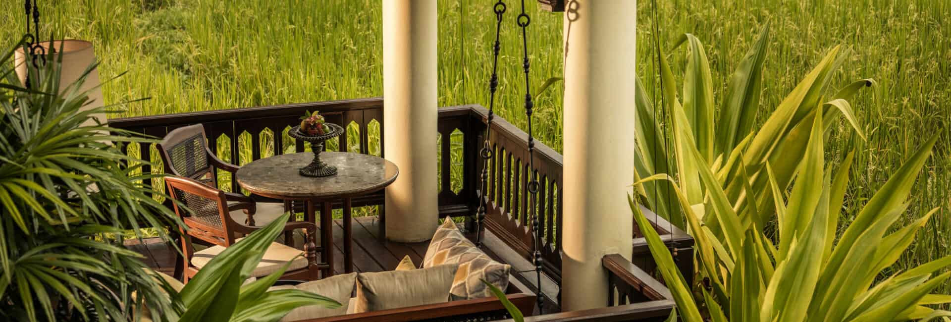 Identische Ausstattung wie „Garden Pavillon“, allerdings mit Blick auf die umliegenden Berge, Reisfelder und immergrünen Landschaften.