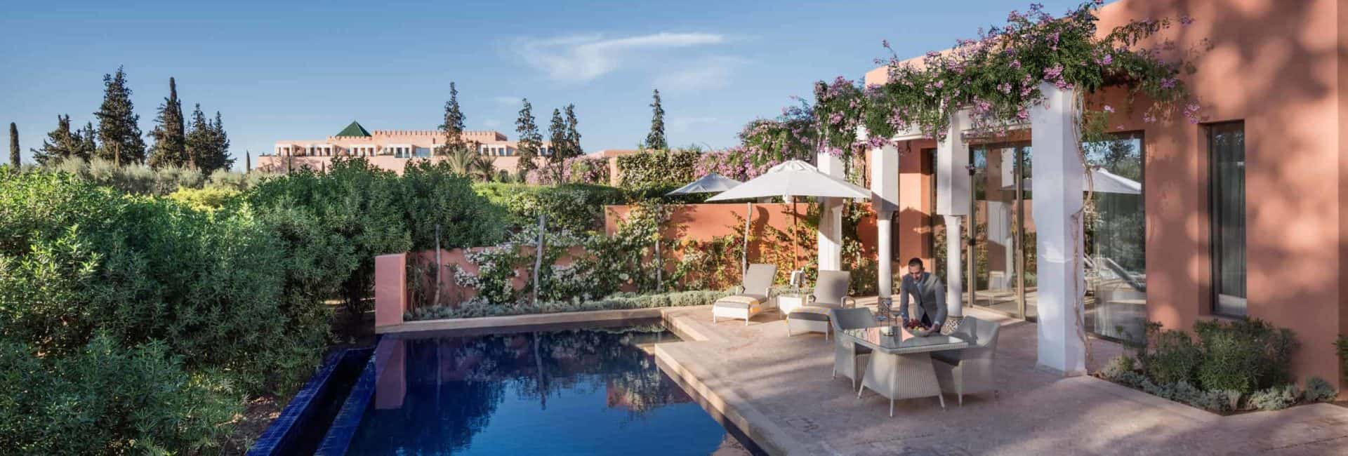 Die Royal Villa ist die Signature Villa des Oberoi Marrakesch. Sie bietet traumhafte Ausblicke auf die Olivenhaine und Orangenplantagen und bietet mit dem privaten Garten einen hervorragenden Rückzugsort für Entspannung und Erholung. Die Royal Villa verfügt darüber hinaus über zwei Schlafzimmer sowie separierte Schlafzimmer für eigenes Personal. Die Badezimmer überblicken den eigenen Garten mit der ausladenden Terrasse und dem 11m langen Pool.