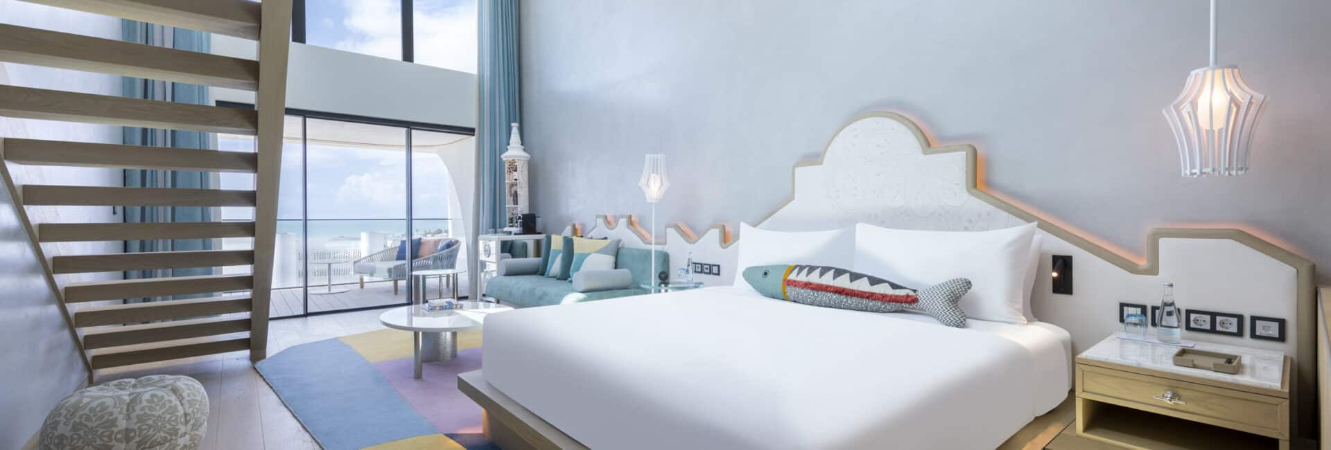 Die insgesamt 134 Gästezimmer, Suiten und Residenzen mit bis zu drei Schlafzimmern sind im exklusiven W-Stil eingerichtet und bieten teilweise einen eigenen Whirl- oder Plunge Pool.
